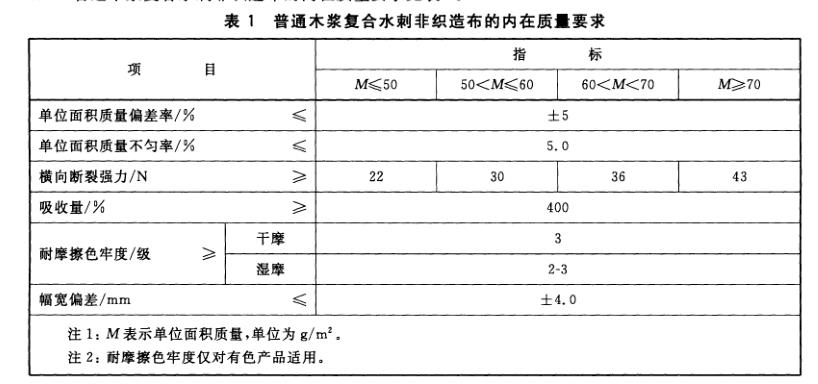 ①.普通木漿復(fù)合水刺非織造布的內(nèi)在質(zhì)量要求