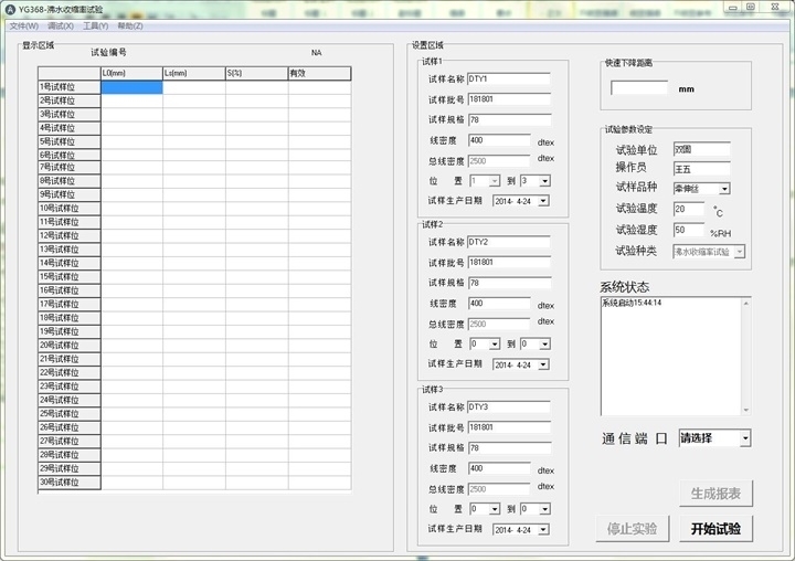 【YG368型長(zhǎng)絲卷曲收縮測(cè)試儀電腦軟件信息設(shè)置界面】