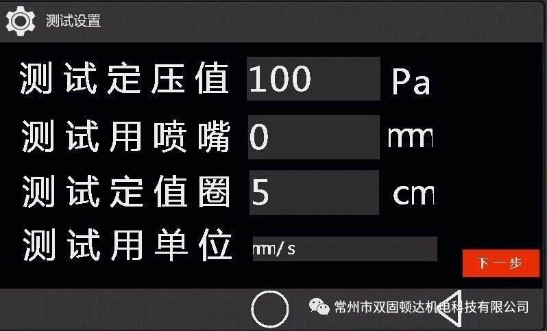 1.接通電源,在液晶觸摸屏上按照標準設置測試條件。