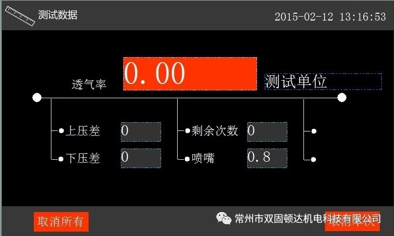4.開始試驗,按下機器壓頭,機器達到設定壓差時、儀器風機自動停止,透氣率數(shù)值自動顯示在液晶屏幕上。