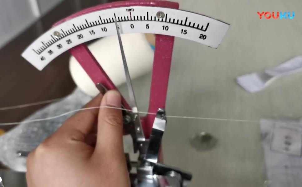 步驟四:按下儀器啟動(dòng)按鈕,紗線(xiàn)會(huì)先退捻,標(biāo)尺指針會(huì)到達(dá)預(yù)先設(shè)置的允許伸長(zhǎng)4mm處,退捻后會(huì)開(kāi)始加捻,標(biāo)尺指針會(huì)回到0處,這時(shí)候儀器零位燈亮起,試驗(yàn)結(jié)束,測(cè)試完畢,在液晶屏幕上讀取每10cm捻度的數(shù)值(亦可換算沒(méi)每米捻度),再多次重復(fù)測(cè)試,得到其平均值。