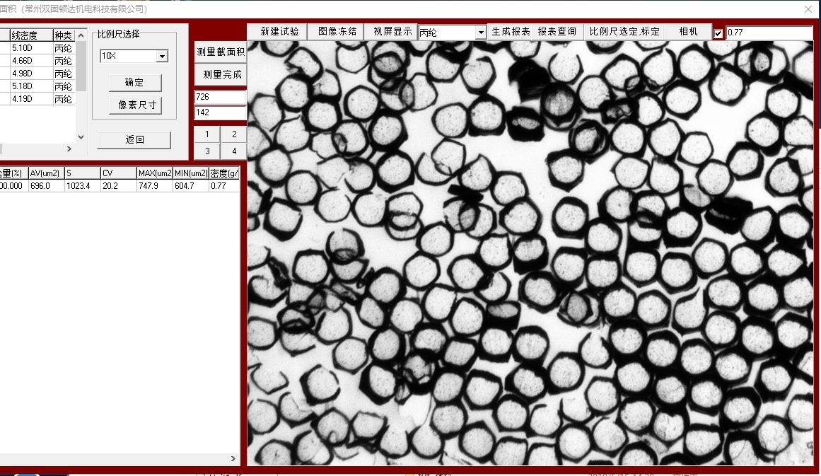 【功能1】強(qiáng)大的測(cè)量軟件(測(cè)量纖維直徑,截面積,纖維線密度D,統(tǒng)計(jì)含量)