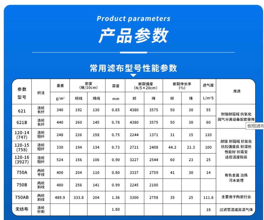 合成纖維主要有丙綸,滌綸,錦綸,維綸等,其中以滌綸和丙綸最為常用,以固液分離為主,廣義的工業(yè)濾布也包括各種金屬材料編織網(wǎng)比如不銹鋼絲、鎳絲、黃銅絲。