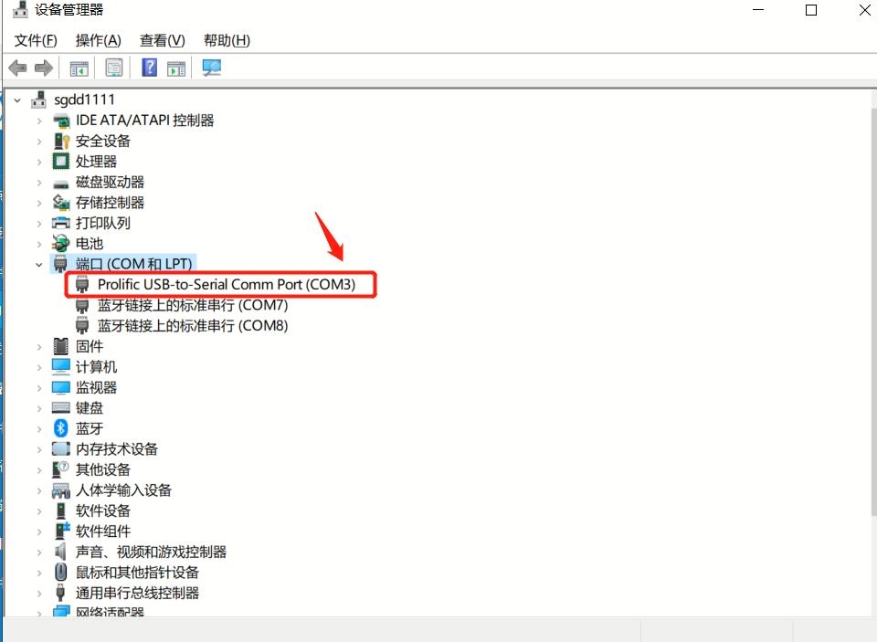第二步:將USB-232的通訊線插到電腦USB的端口上,如果電腦上已經(jīng)安裝了驅(qū)動(dòng),會(huì)出現(xiàn)下圖所示的Prolific USB-to-Serial Comm Port(COM+數(shù)字)的提示,如果電腦上沒(méi)有出現(xiàn)這段字符,兩種方法:第一電腦如果可以上網(wǎng),下載個(gè)驅(qū)動(dòng)精靈一鍵識(shí)別安裝;方法2購(gòu)買(mǎi)這個(gè)線隨機(jī)會(huì)有安裝光盤(pán),將程序安裝一下即可。