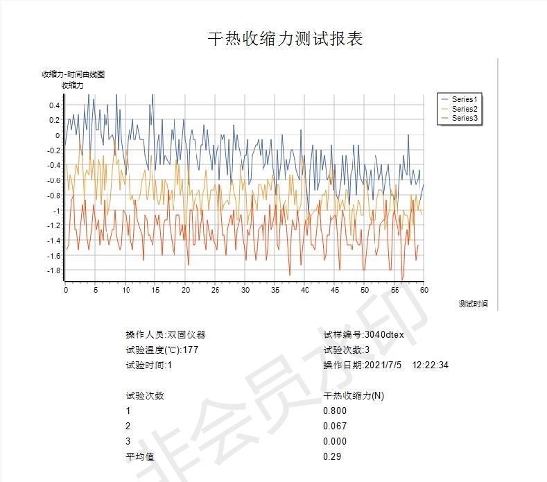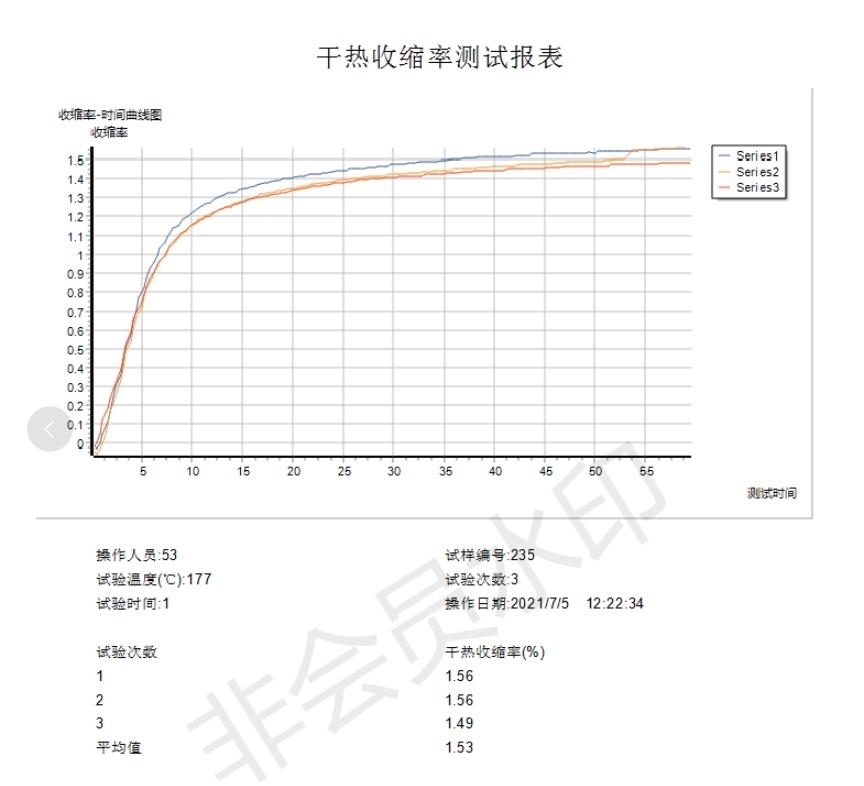 利用干熱收縮儀或熱循環(huán)烘箱,在恒定溫度的熱空氣中,經(jīng)過規(guī)定的時(shí)間,測量并計(jì)算出浸膠紗線,線繩和簾線在預(yù)加張力下的干熱收縮率,干熱收縮力以及浸膠紗線的自由干熱收縮率。